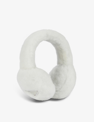 Highlights white shearling shearling trim enamel triangle logo silver-tone hardware. Belle Fare Fox Fur Headband. Buy Prada Womens Black Fur Earmuffs.